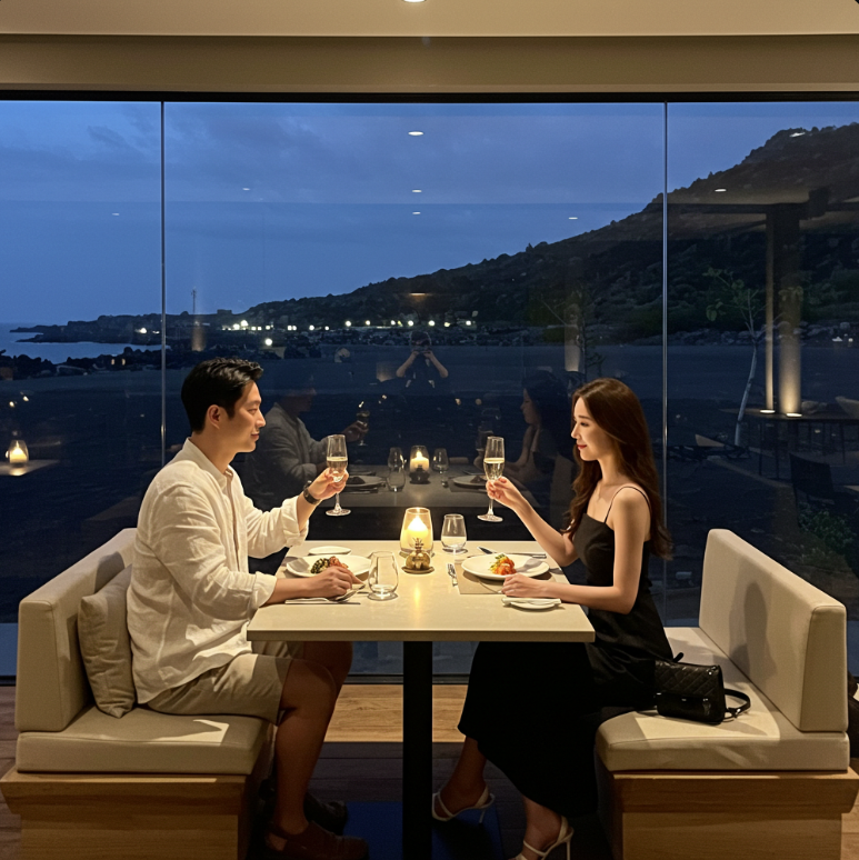 점심은 성산읍에 위치한 ‘해녀의 집’에서 신선한 해산물을 맛보는 것을 추천합니다. 오후에는 김녕해변에서 에메랄드빛 바다를 만끽하고, 저녁은 구좌읍에 있는 흑돼지 맛집에서 마무리하는 것이 좋죠. 서쪽 코스는 협재해수욕장, 금능해변 등 아름다운 해변과 함께 즐길 수 있어요.